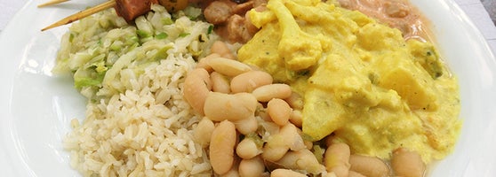 Comida variada e com muitos pratos veganos. Torta de legumes e moqueca de banana, experimente. Sobremesas deliciosas e caseiras como o doce de abóbora e o bolo de fubá com goiabada, ambos veganos.